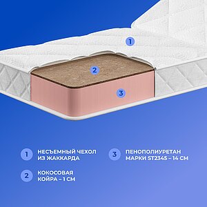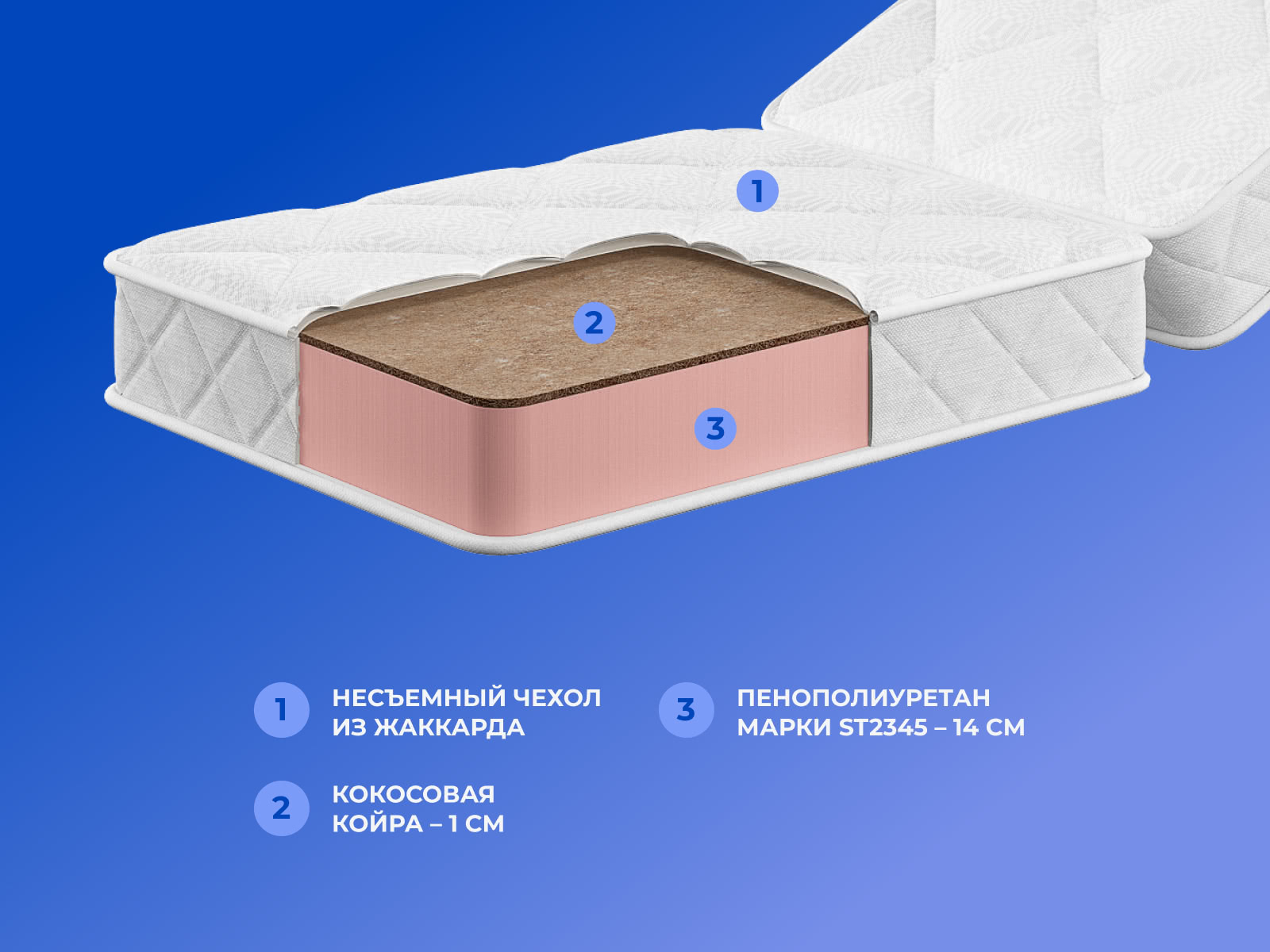 Кокос — натуральный материал, койра отлично дышит, придает матрасу «TabbyFold 14K 2x» жесткость и упругость.