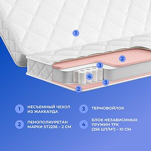 Уровень жесткости: ниже среднего. Состав матраса: