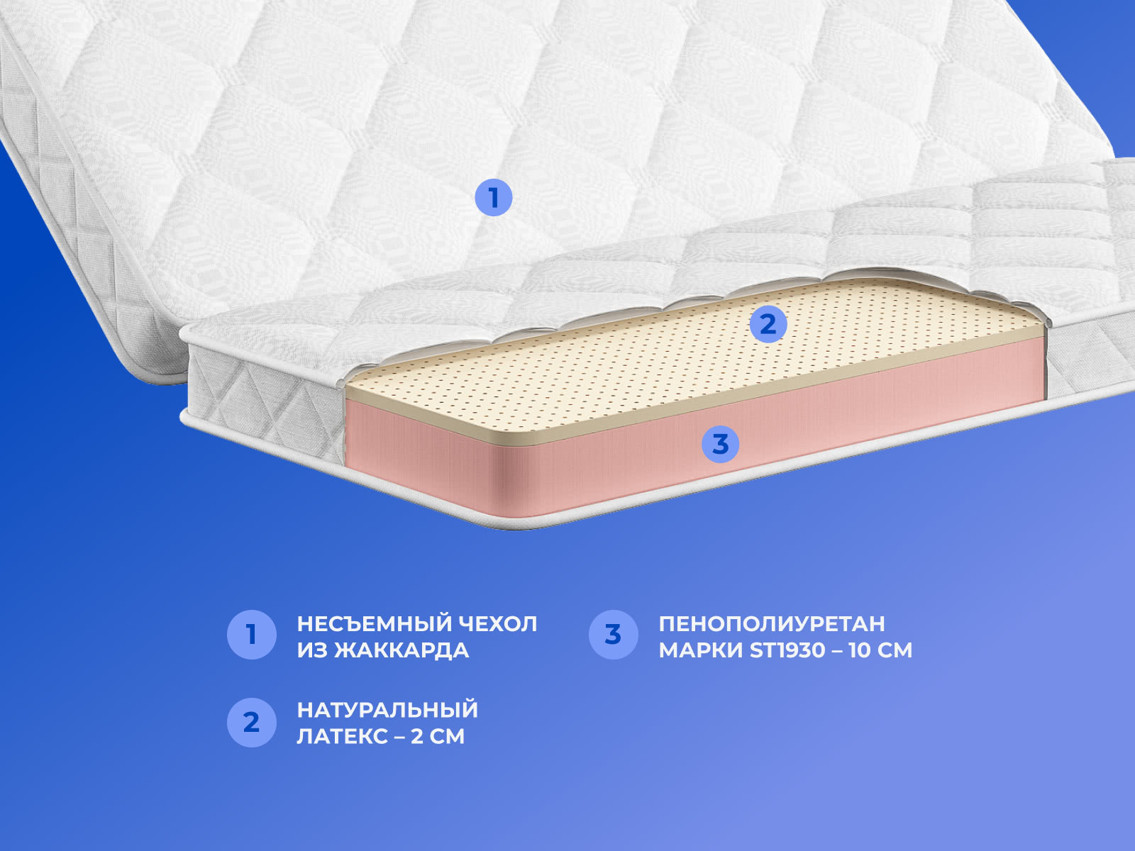 Латекс — упруго-мягкий материал на основе вспененного сока дерева-каучуконоса. Добавляет матрасу «TabbyFold Flex 10 B» мягкость, увеличивает комфортность.