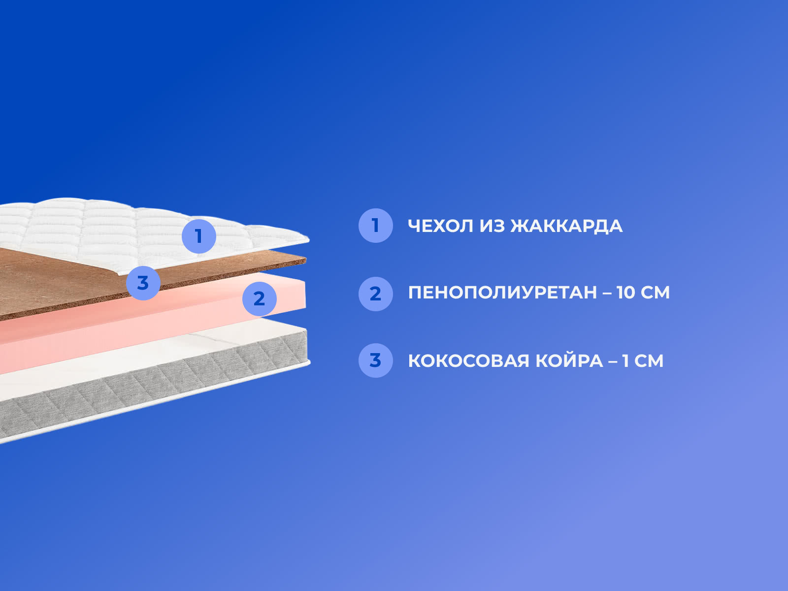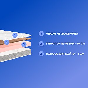 Кокос — натуральный материал, койра отлично дышит, придает матрасу «TabbyRoll 10K» жесткость и упругость.