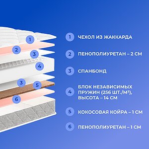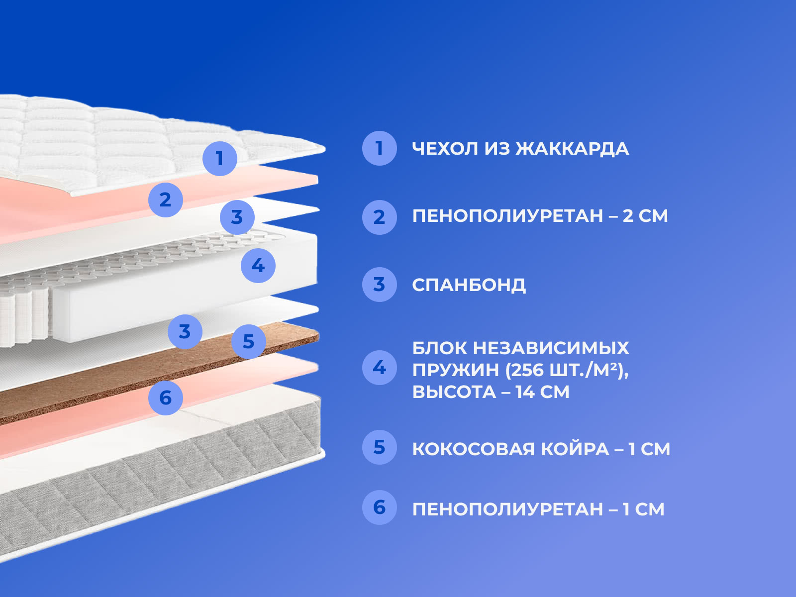 Кокос — натуральный материал, койра отлично дышит, придает матрасу «Tabby Dual» жесткость и упругость.