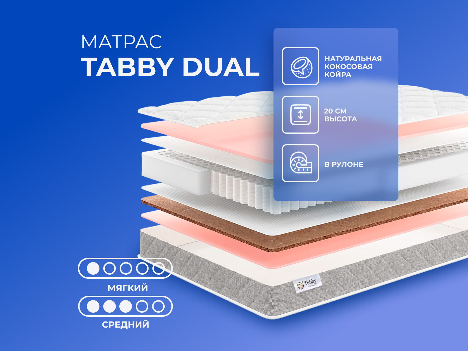 Преимущество матраса Tabby Dual — он имеет 2 различные по жесткости стороны: мягкую и средне-жесткую.