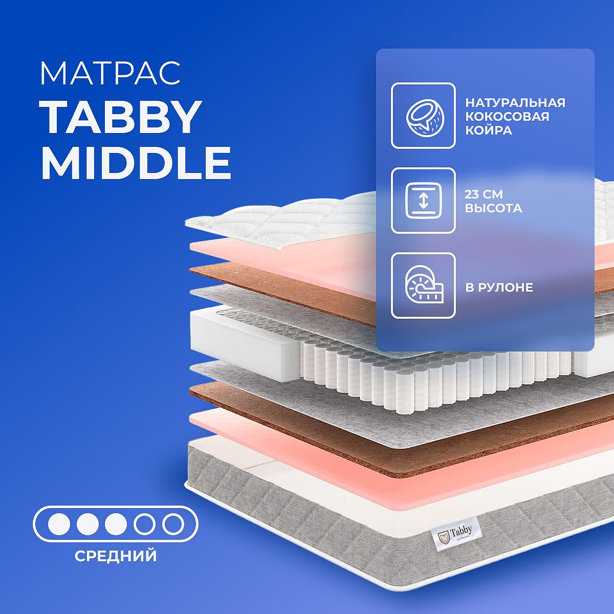 Матрас Tabby Middle имеет среднюю толщину и подходит к большинству типов кроватей.