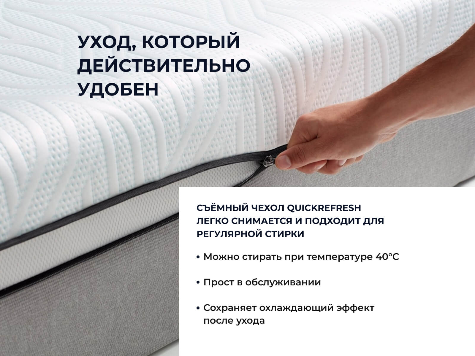 Чехол на молнии — удобство ухода на матрасом. При необходимости его можно снять для чистки.