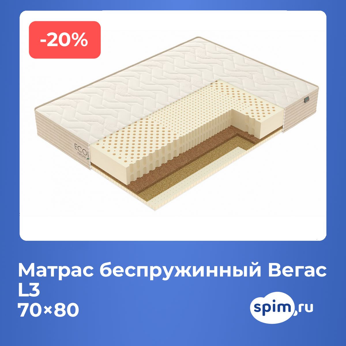 Кокос — натуральный материал, койра отлично дышит, придает матрасу «L3» жесткость и упругость.