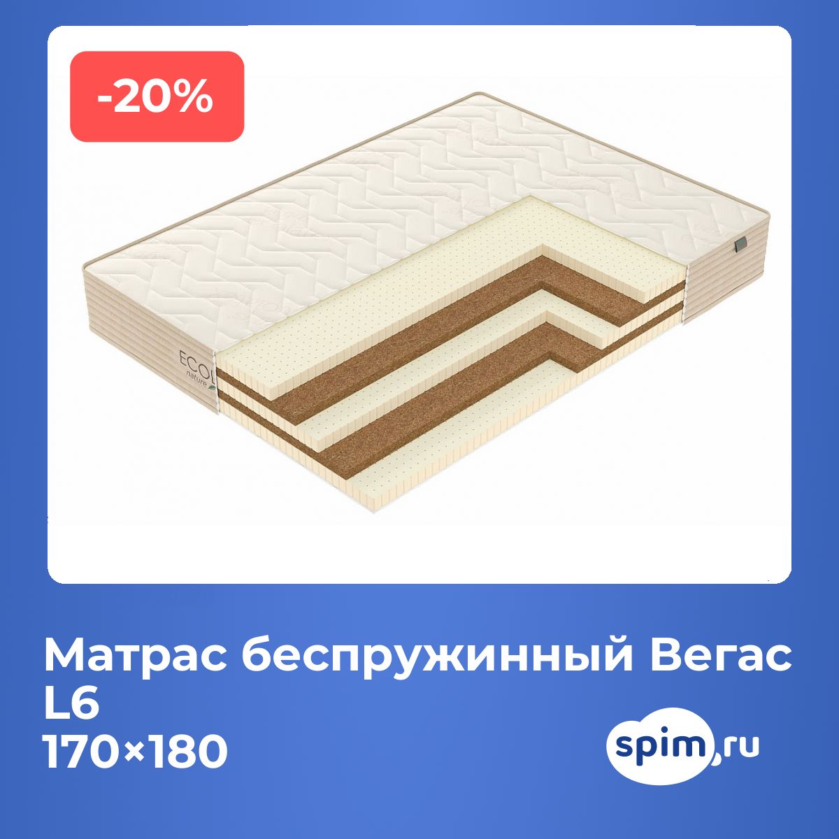 Кокос — натуральный материал, койра отлично дышит, придает матрасу «L6» жесткость и упругость.