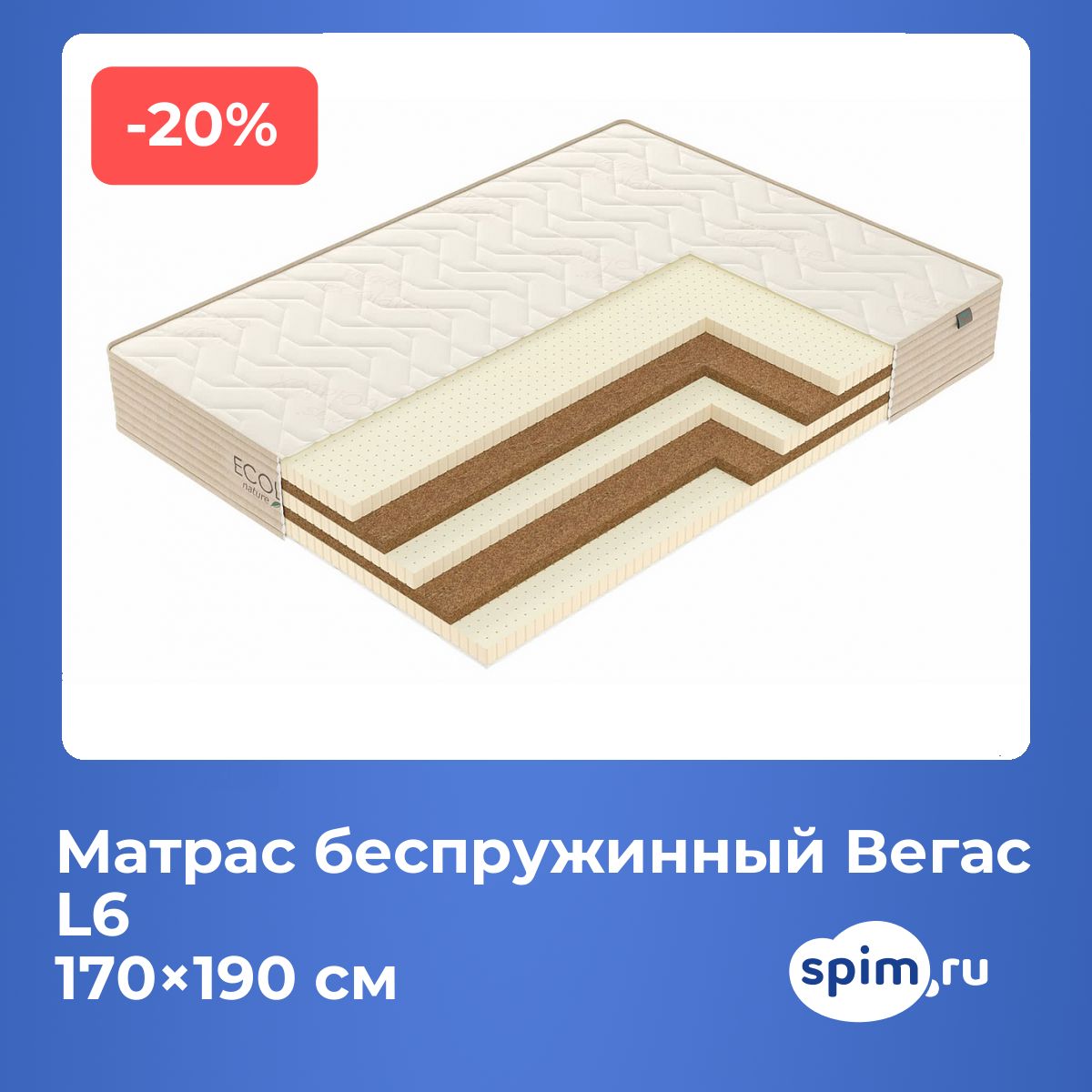 Матрас беспружинный Вегас L6 170х190 смАртикул С-20235