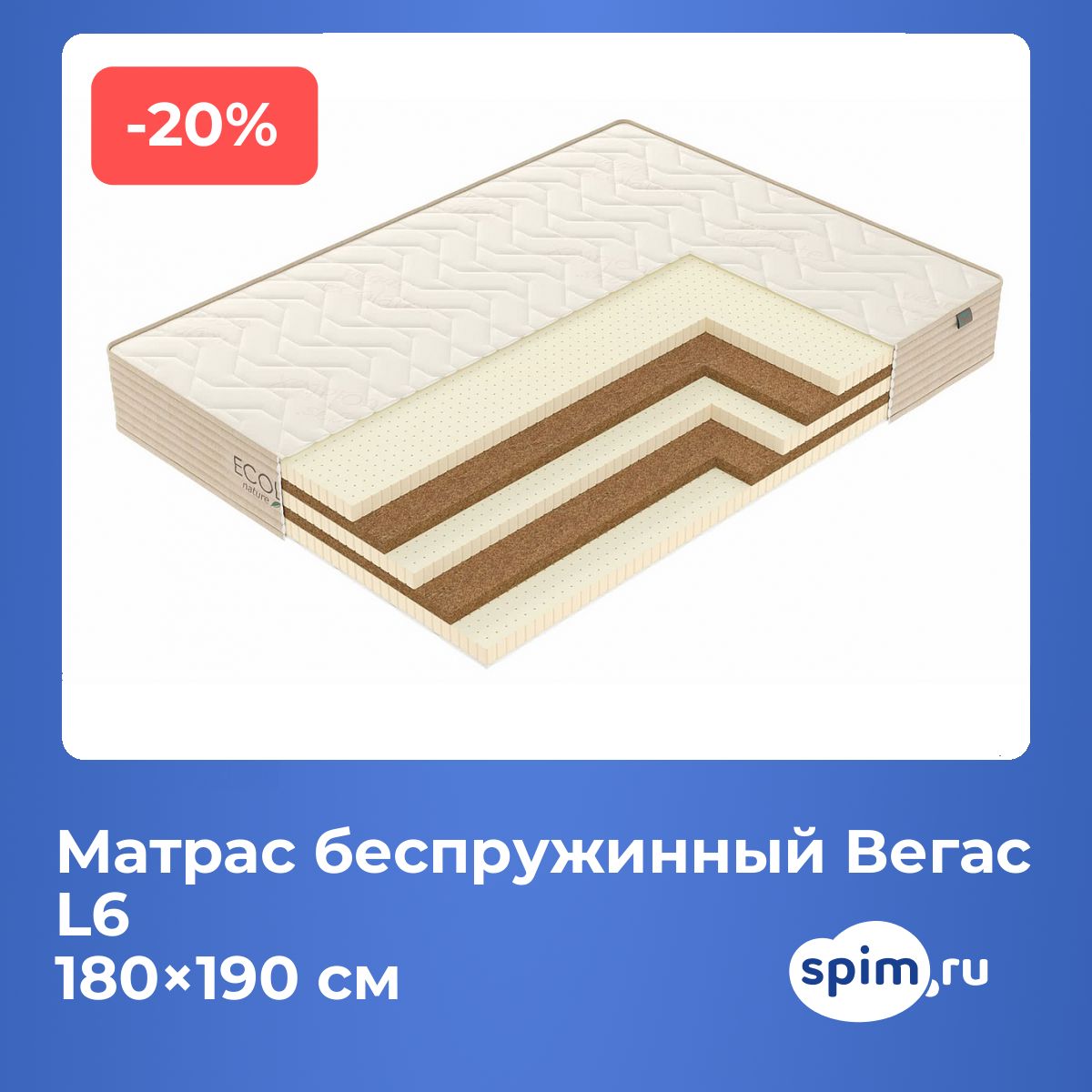 Матрас беспружинный Вегас L6 180х190 смАртикул С-20235
