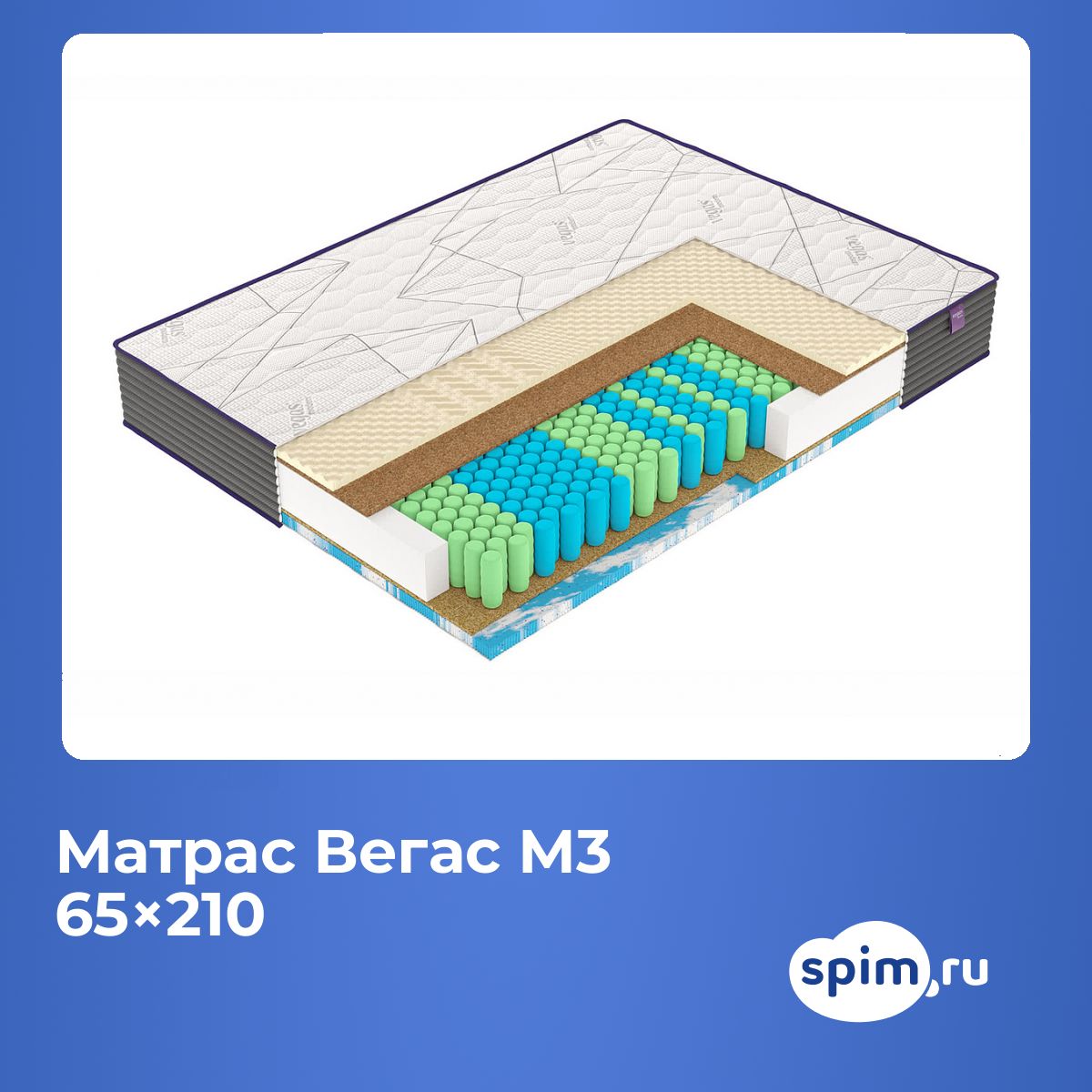 Матрас «Vegas M3» — средней жесткости, которая подходит большинству людей среднего телосложения. Это — оптимальный выбор и детям, и взрослым, и пожилым людям.