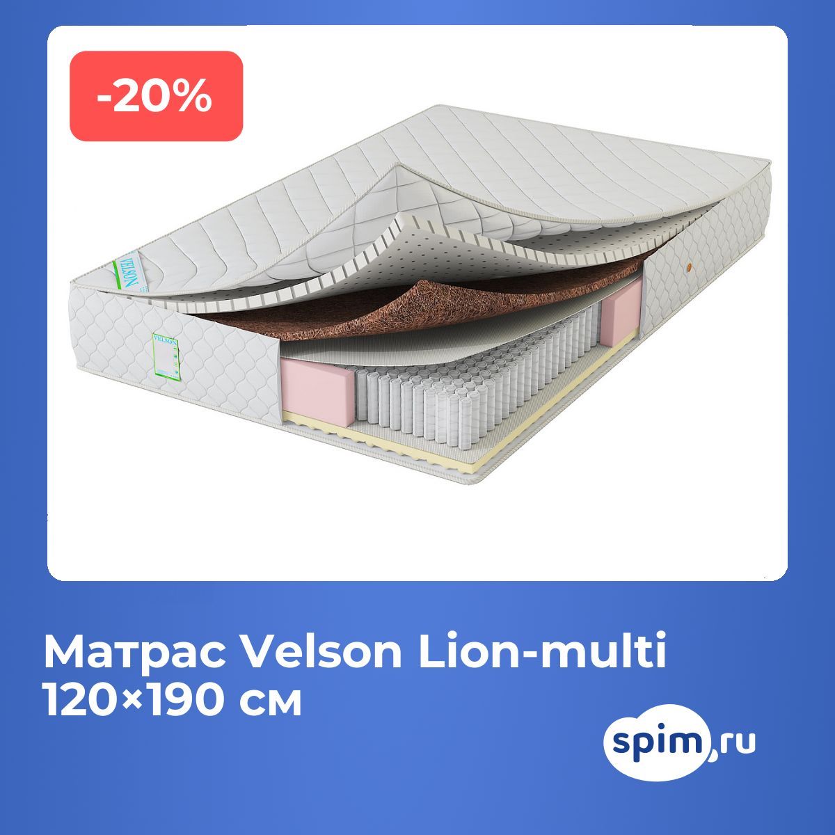 Советы по уходуДля сохранения чистоты и продления срока службы рекомендуется использовать защитный наматрасник (не входит в комплект). О производителеVelson — российский бренд, ориентированный на создание качественных матрасов, сочетающих современные материалы и продуманную конструкцию для комфортного сна.