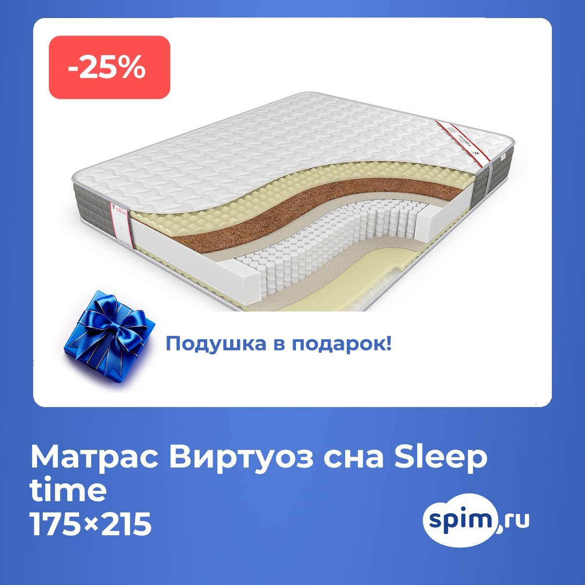 Размер матраса Sleep time: 175х215 см
