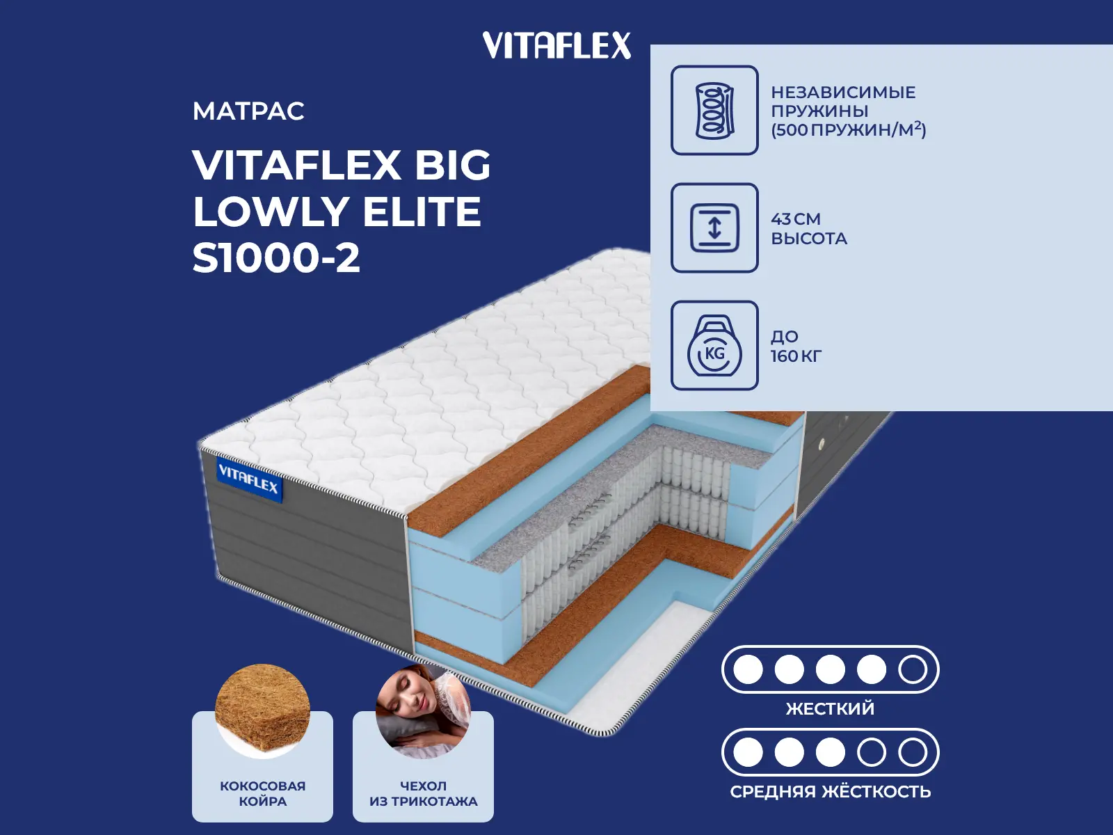 Матрас Vitaflex Big Lowly Elite S1000-2 65х200 смАртикул С-112981
