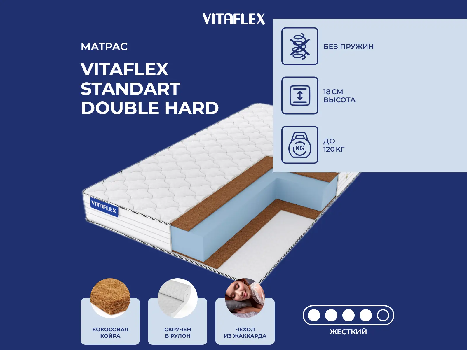 Матрас Standart Double Hard рассчитан на нагрузку не более 120 кг на одно спальное место.
