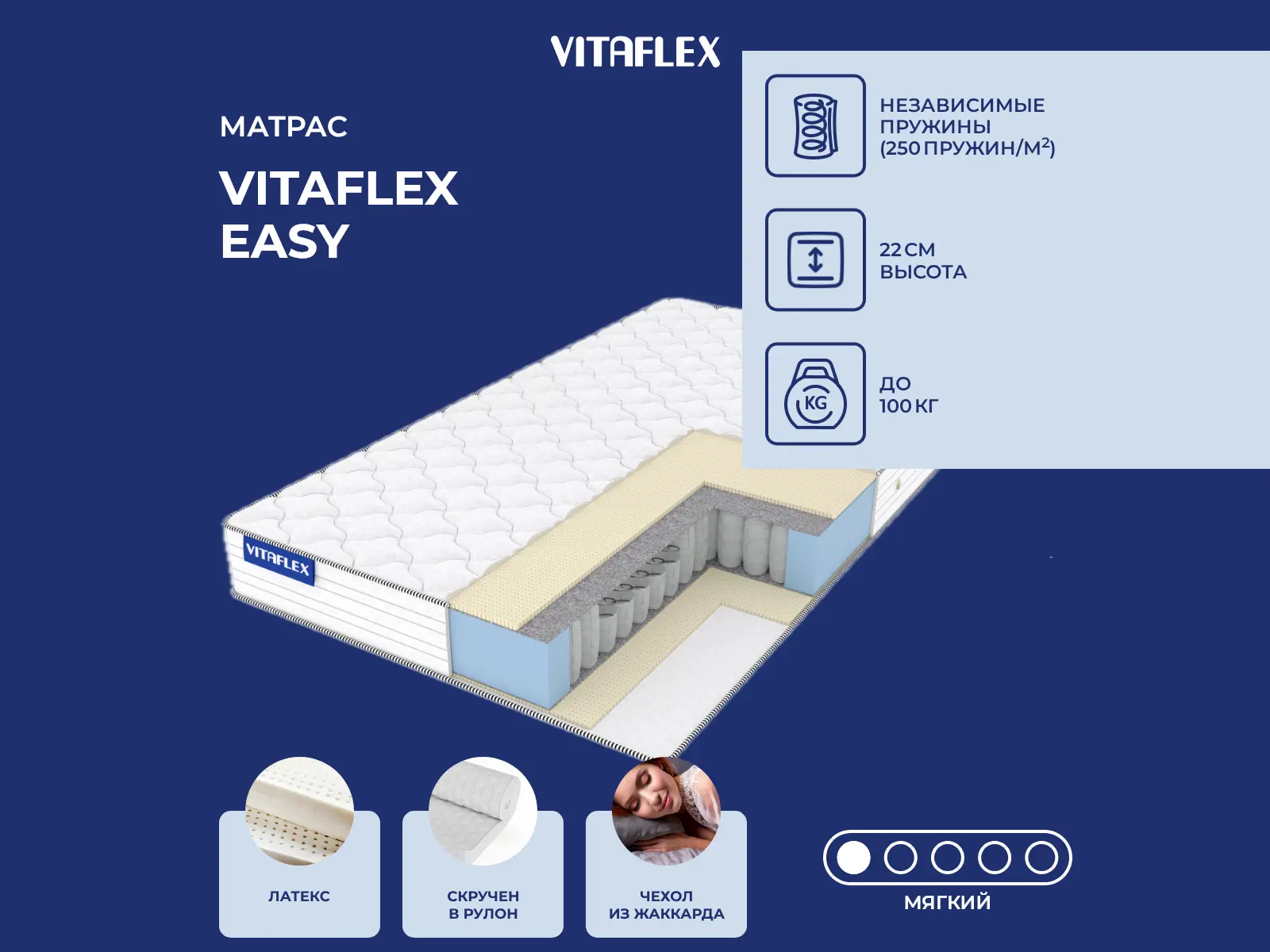 Мягкий матрас «Vitaflex Easy» отлично подойдет человеку с небольшим весом, ценителю комфорта.