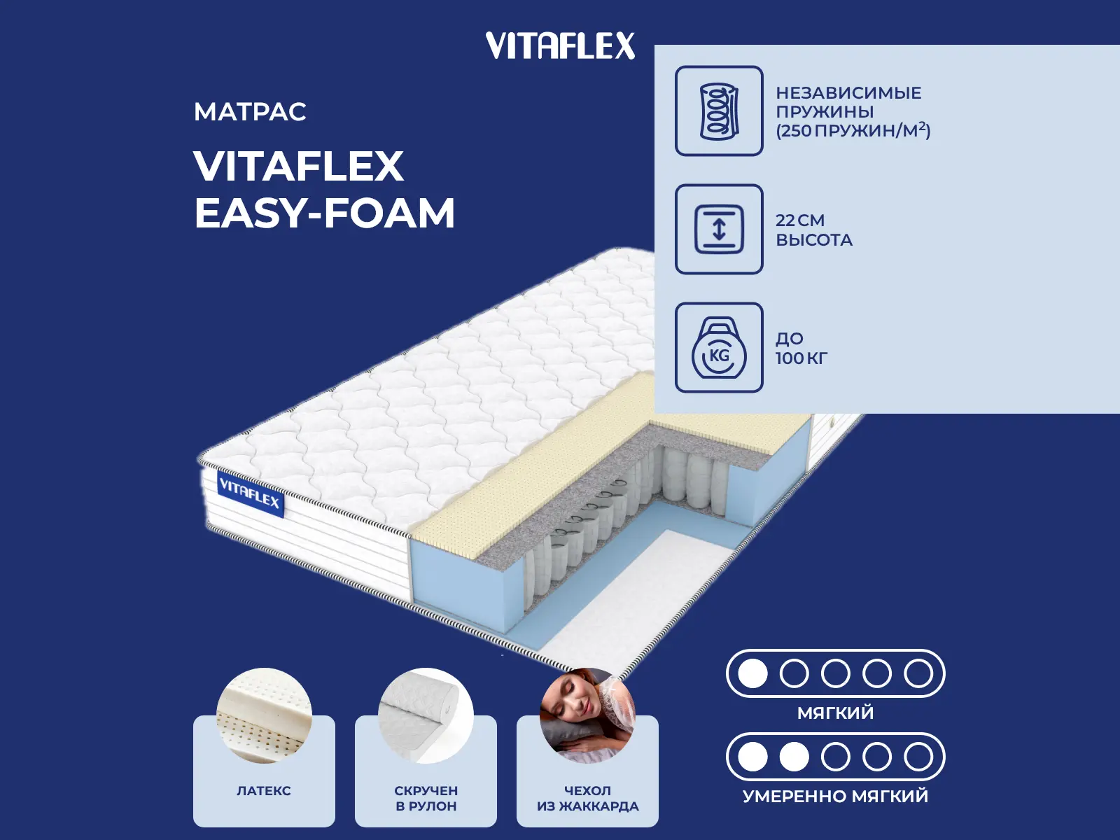 Матрас Easy-Foam рассчитан на нагрузку не более 100 кг на одно спальное место.