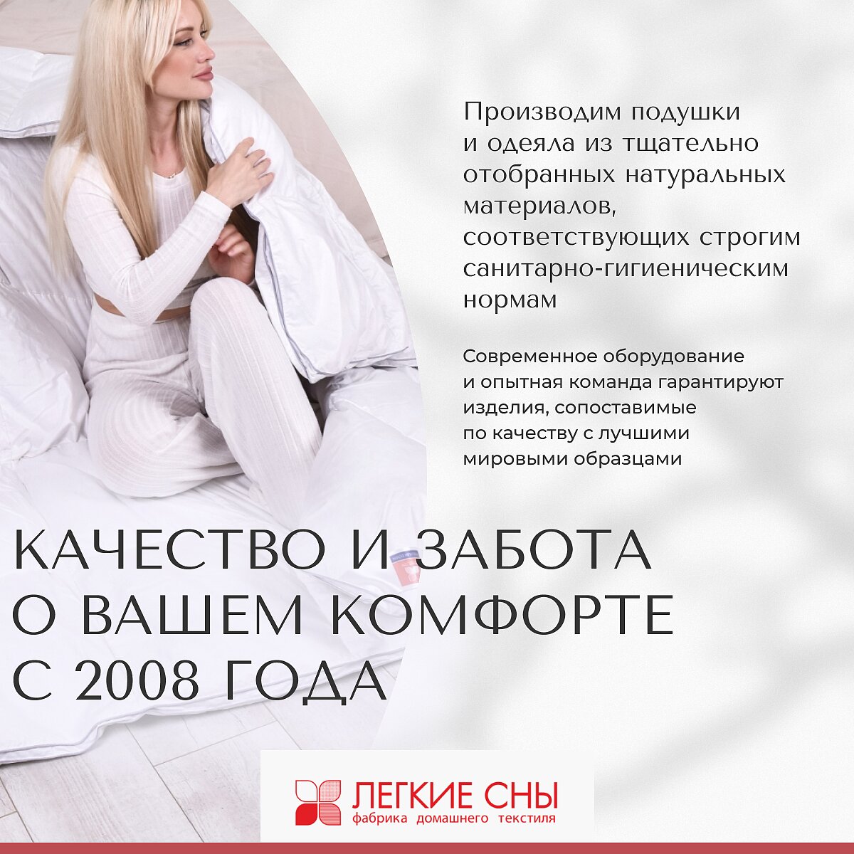Вы можете купить пуховое одеяло Легкие сны Афродита, легкое и в других размерах: 200х220 см, 155х215 см.