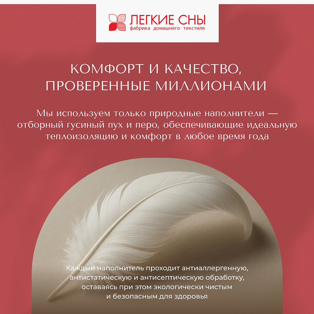 Пух водоплавающих птиц — мягкий, лёгкий и тёплый наполнитель. Пуховое одеяло «Афродита, легкое» — роскошный выбор для комфортного сна. Под таким невесомым и отлично дышащим одеялом никогда не будет слишком жарко.