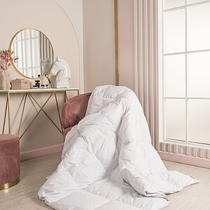Пух водоплавающих птиц — мягкий, лёгкий и тёплый наполнитель. Пуховое одеяло «Афродита, теплое» — роскошный выбор для комфортного сна. Под таким лёгким и отлично пропускающим воздух одеялом никогда не будет слишком жарко.