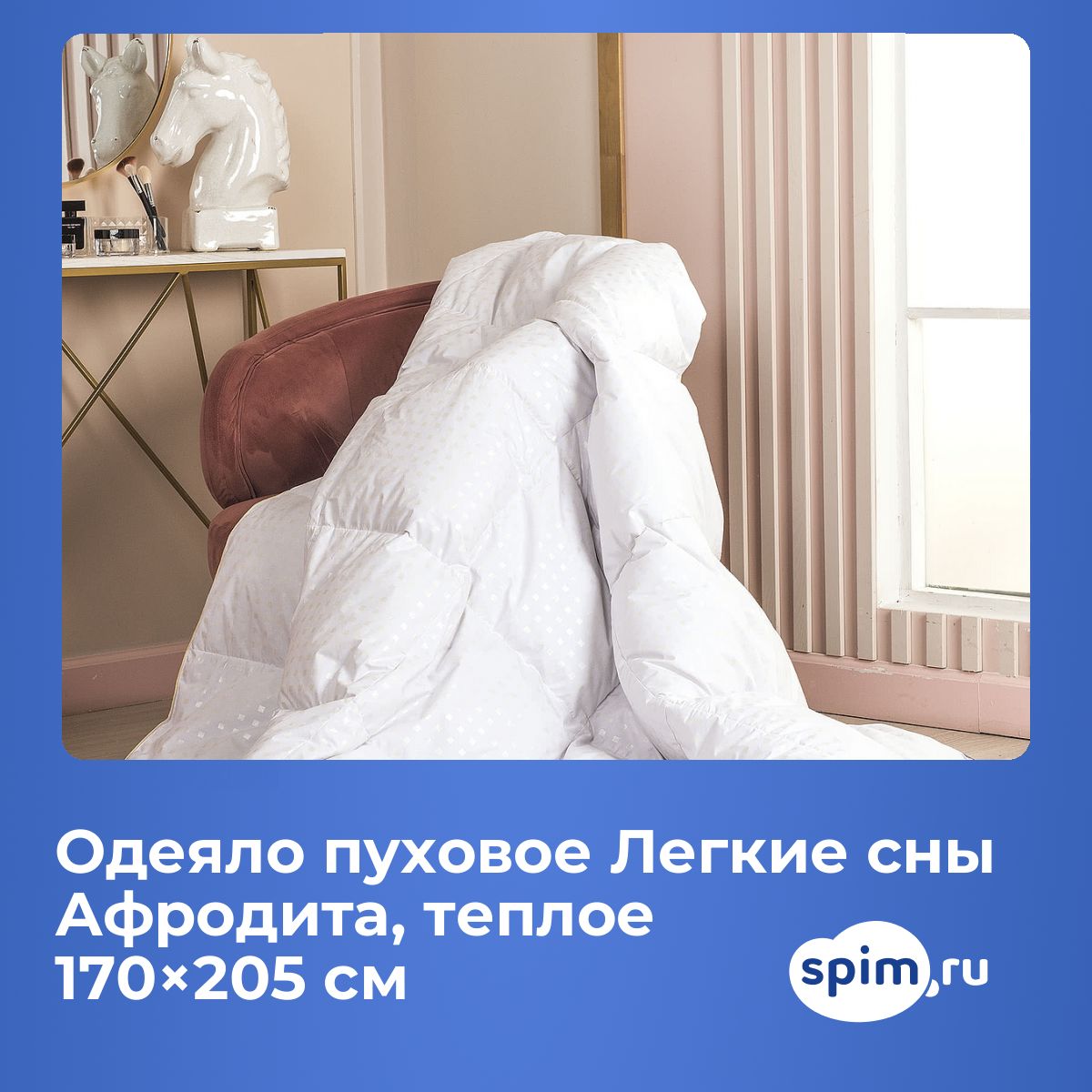 Вы можете купить одеяло пуховое Легкие сны Афродита, теплое и в других размерах: 200х220 см, 155х215 см.