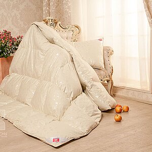 Наполнение: 85% серый гусиный пух 1-ой категории, 15% мелкое перо.Чехол: 100% хлопок, тик, цвета - голубой, шампань. Размеры, см: 110х140 (500 г. пуха), 140х205 (850 г. пуха), 172х205 (1050 г. пуха), 200х220 (1250 г. пуха). Рекомендации по уходу:
