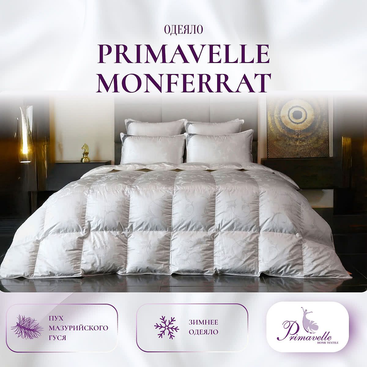 Пух водоплавающих птиц — мягкий, лёгкий и тёплый наполнитель. Пуховое одеяло «Monferrat» — роскошный выбор для комфортного сна. Под таким невесомым и отлично дышащим одеялом никогда не будет слишком жарко.
