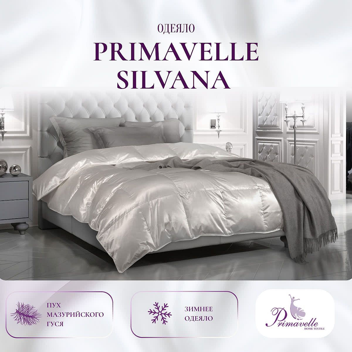 Ткань чехла: 65% шелк, 35% хлопок. Цвет: слоновая кость. Жемчужина коллекции – одеяло Silvana с наполнителем из мазурийского гусиного пуха в чехле из натурального шелка с хлопком. Мазуриский гусиный пух - это пух высшей категории - легкий, воздушный, эластичный. Пух мазурийского гуся, обитающего в северных регионах Польши – это крупный пух высочайшего качества. Натуральный шелк идеально удерживает пуховое сокровище внутри. Шелк – это удивительный материал: легкий, изысканный, струящийся, обладающий гигроскопичностью и отличной терморегуляцией, повышенной износостойкостью. Одеяло Silvana, в чехле из натурального шелка с добавлением хлопка, будет дарить Вам здоровый и комфортный сон круглый год. Под таким одеялом будет тепло зимой и комфортно летом, благодаря уникальным терморегулирующим свойствам чехла и пухового наполнителя. Одеяло Silvana имеет кассетное распределение пуха, т.е. в каждую камеру пух задувается отдельно. Такое распределение пуха позволяет на долгие годы сохранять великолепную форму одеяла.