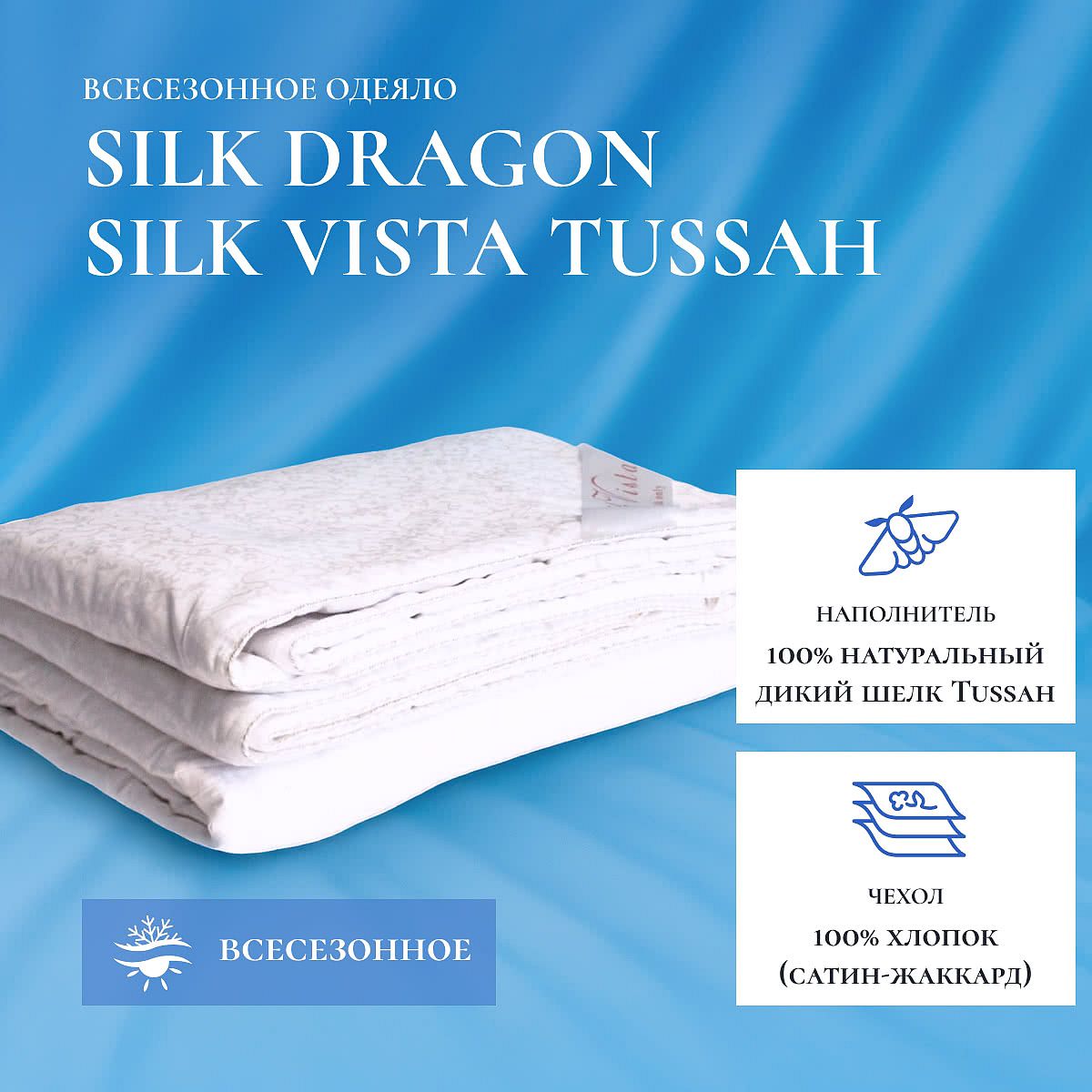 Полезные свойства шелка известны уже много тысячелетий. В шелке не живут бактерии, он не собирает пыль. Шелковое одеяло «Silk Vista Tussah, всесезонное» — лучший подарок для себя и своих близких.