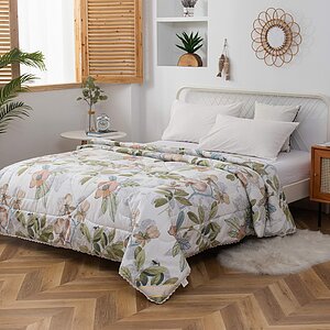 Плотность ткани: 200 ТС. Наполнение: 100% микроволокно. Декор: кружевной кант. Размеры, см: 160х220, 200х220. Уход: стирка при 30°С. Одеяло гипоаллергенно, без синтетических красителей, пропитки и обработки. Новые одеяла из натуральных материалов не только комфортные, но и необычайно красивые. Обратите внимание на дизайн одеял: они выполнены в актуальном стиле Прованс, который принесет нотки французского шарма в ваш дом. Одеяла изготовлены из натурального хлопка, наполнитель микроволокно поэтому они упругие, легкие, под ними приятно спать. Хлопок хорошо регулирует тепло, летом под таким одеялом не будет жарко, а зимой холодно, ведь наполнитель эффективно поглощает влагу.