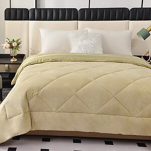 Ткань: сторона А - 100% вискоза (велюр), сторона В - 100% хлопок (сатин).Наполнитель: 100% эковолокно. Плотность наполнителя, гр/м: 160. Размер, см: 160х220, 220х240. Уход: стирка при 30 °С.