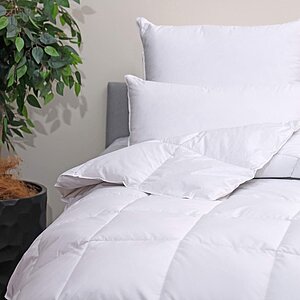 Ткань: 100% хлопок, сатин.Наполнитель: 50% утиный пух, 50% гусиный пух. Размер, см: 155х215, 195х215.