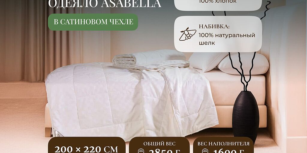 Шелковое одеяло Asabella всесезонное в сатиновом чехле