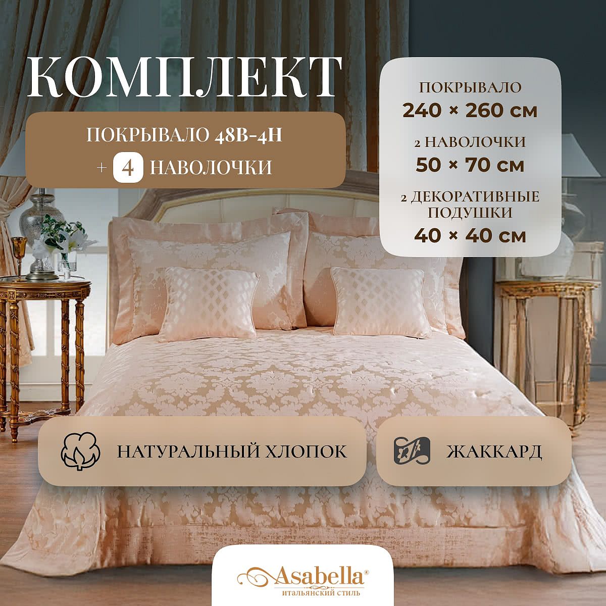 Ткань с узором, полученным специальным переплетением нитей. Жаккардовое покрывало «Asabella 48B-4H» порадует красивым внешним видом и высокой износостойкостью.
