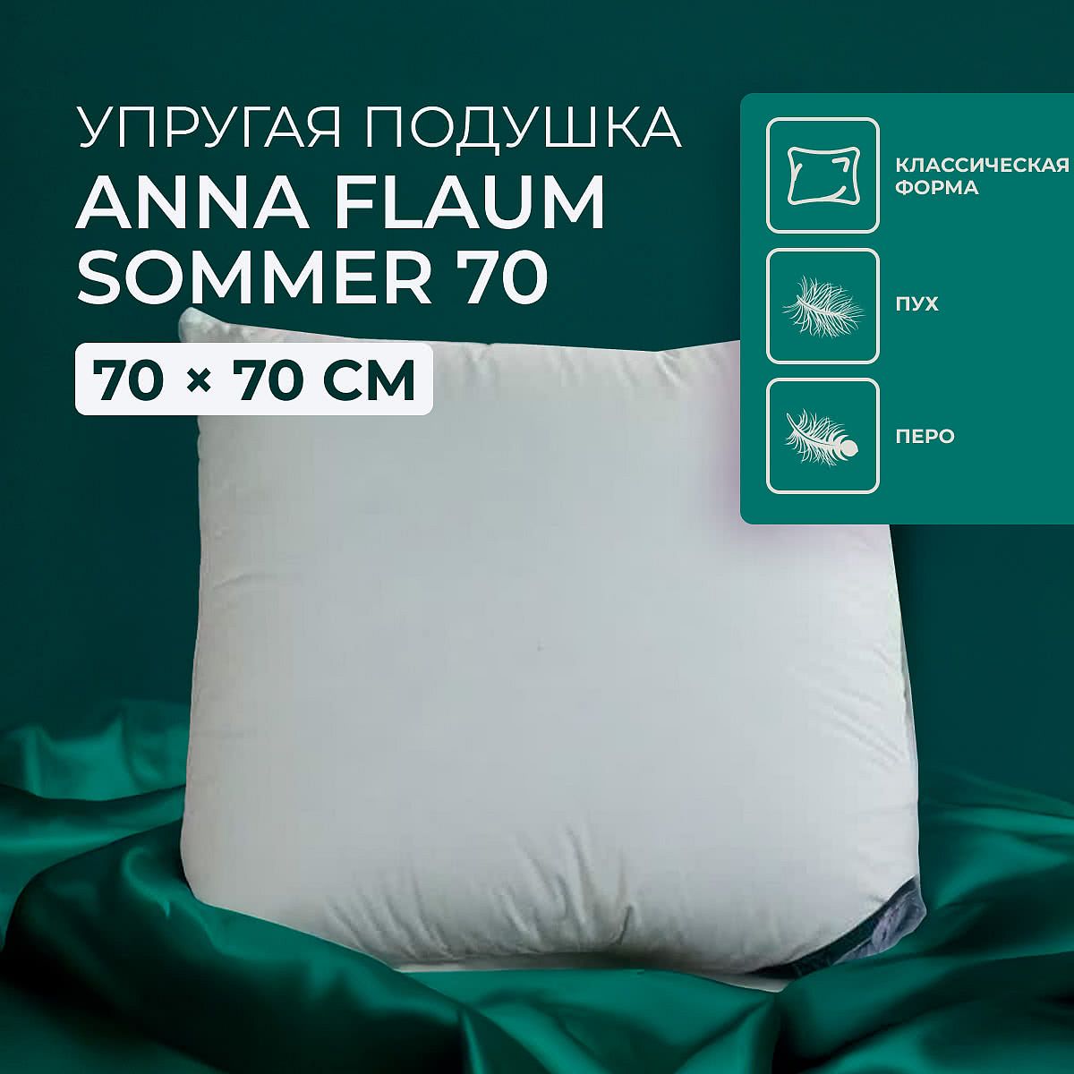 Пух водоплавающих птиц — мягкий, тёплый и упругий наполнитель. Подушка с пухом «Anna Flaum Sommer 70, упругая» — традиционный выбор для комфортного сна.