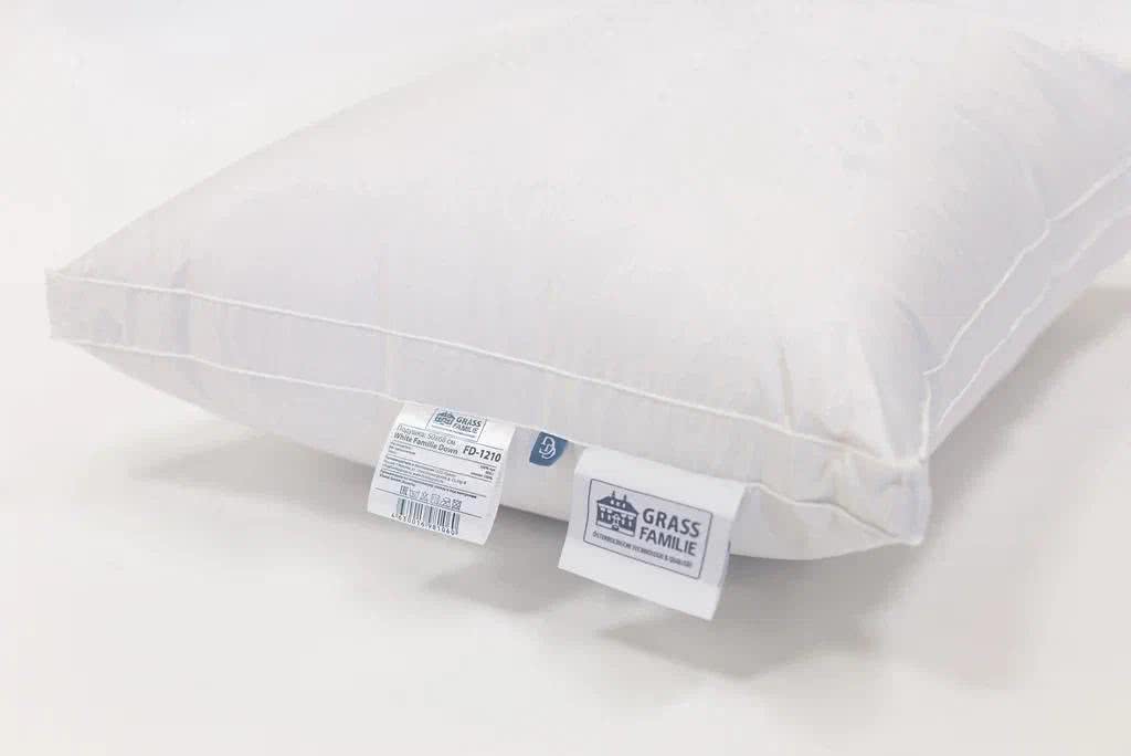 Пух водоплавающих птиц — мягкий, тёплый и упругий наполнитель. Пуховая подушка «Grass Familie White Down арт. FD-1210» — традиционный выбор для комфортного сна.