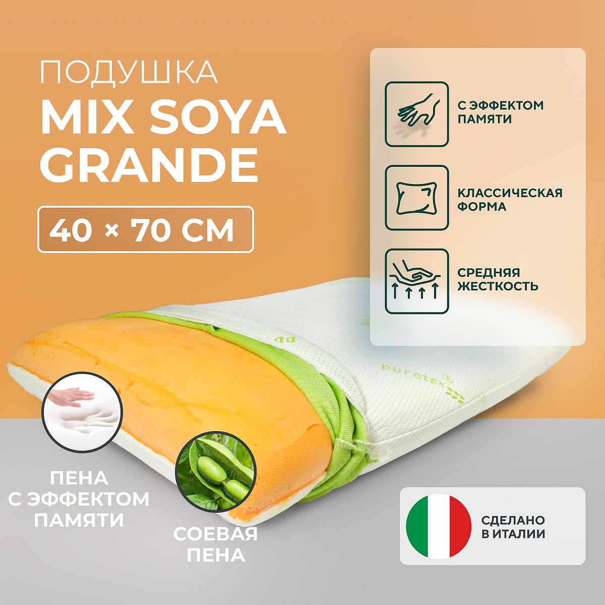 Подушка «Mix Soya Grande» имеет традиционную форму. Эта форма подушки универсальна и не требует привыкания.