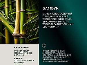 Стежка чехла - 100% бамбуковое волокно, внутри - 100% полиэфирное волокно