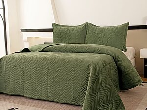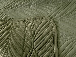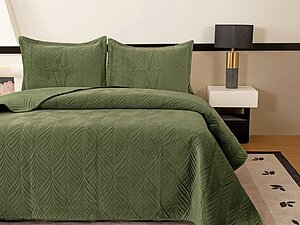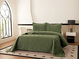 Зеленое покрывало придаст свежести спальне и подчеркнет стиль интерьера. Его легко сочетать с нейтральными шторами и декоративными подушками. Ткань приятна на ощупь и проста в уходе, оттенок подходит для разных сезонов и задумок оформления.